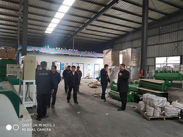 2018年11月28日上午,時莊街道黨工委書記孔文旭率領(lǐng)街道領(lǐng)導(dǎo)及職能部門人員,來我公司檢查指導(dǎo)工作??讜浺恍胁榭戳诵率ヌh建基地建設(shè)、企業(yè)文化建設(shè),安全生產(chǎn)管理檔案,并深入車間,對車間安全、車間定置管理、車間衛(wèi)生提出了很好的建議和改進措施。