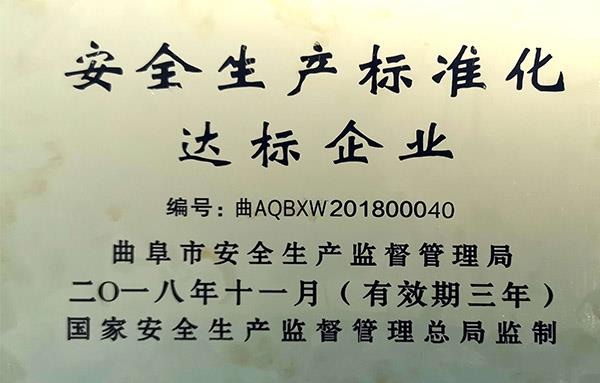 新圣泰榮獲“安全生產(chǎn)標準化達標企業(yè)”證書