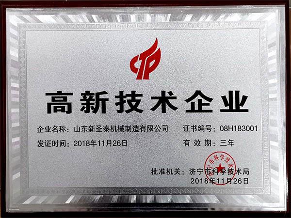 新圣泰獲濟寧市高新技術(shù)企業(yè)稱號