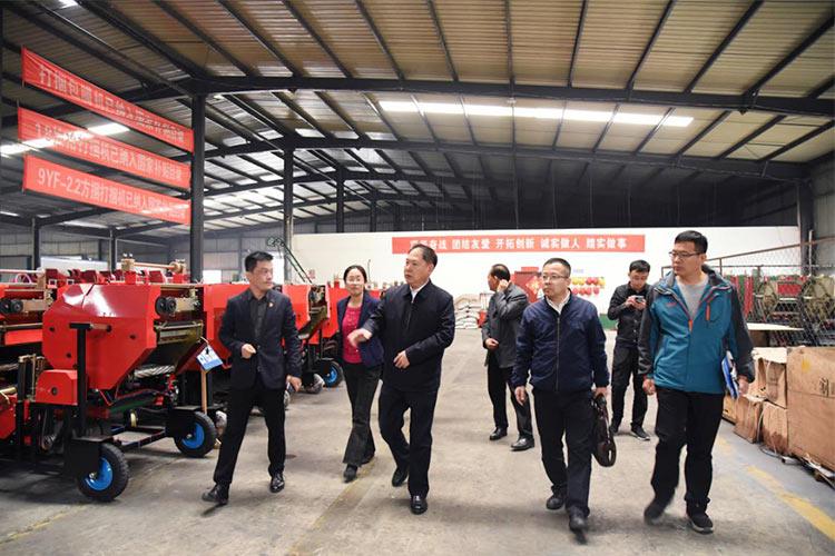 曲阜市農(nóng)業(yè)農(nóng)村局黨組成員、農(nóng)業(yè)系統(tǒng)黨委副書(shū)記孫春美,農(nóng)業(yè)農(nóng)村局農(nóng)機(jī)化管理科路偉,時(shí)莊街道辦事處副主任孔慶迎陪同。省院領(lǐng)導(dǎo)首先察看了生產(chǎn)車(chē)間,對(duì)于新圣泰的產(chǎn)品進(jìn)行了詳細(xì)了解,并觀看了青貯圓捆打捆機(jī)現(xiàn)場(chǎng)操作演示。